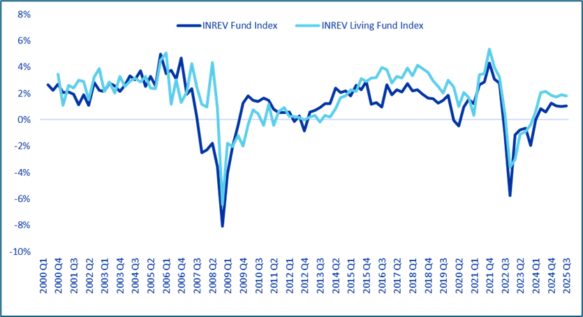 Source: INREV Fund Index and INREV Living Fund Index