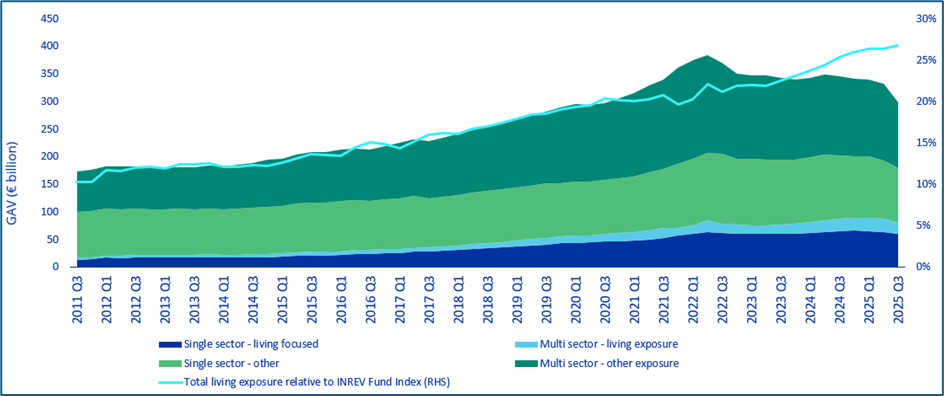 If you’ve been watching trends in the European non-listed real estate, one thing is clear: the Living sector is dominating the scene. Comprising residential and student housing funds, living is now the largest segment within the INREV Fund Index — not just in terms of allocations, but also in the number of single sector funds.